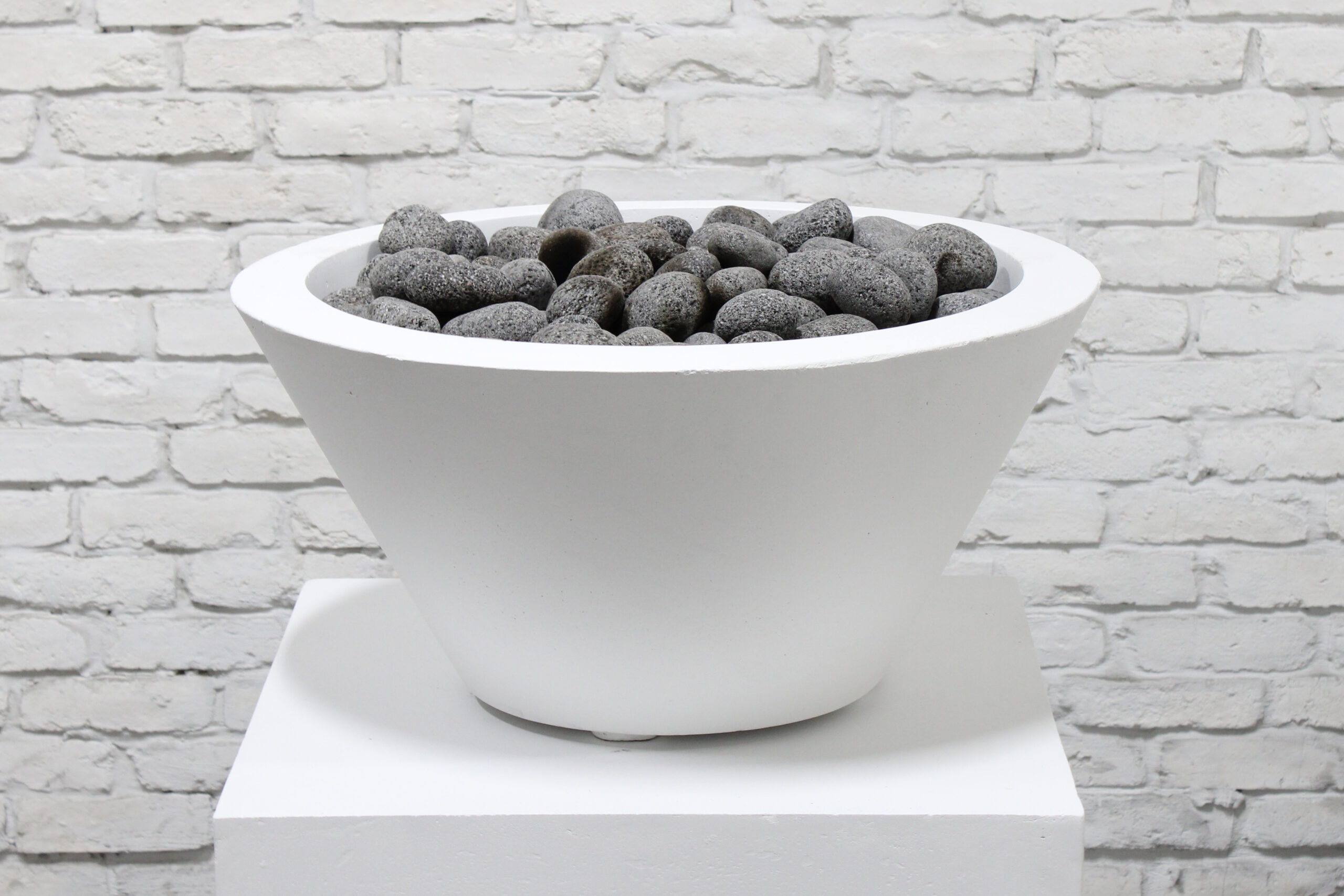 The fire pit comes complete with one 27 lb. bag of ¾” lava rock. The naturally occurring volcanic rock creates a stunning contrast to the beautiful flames of any gas fire feature while the lava rock is heat resistant.