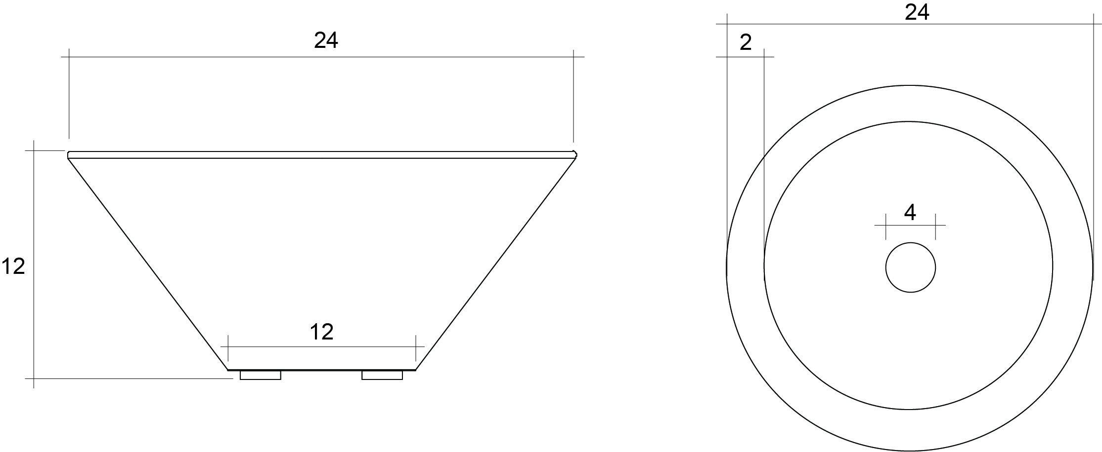 • 24“D (Top) / 12″D (Base) / 12“H