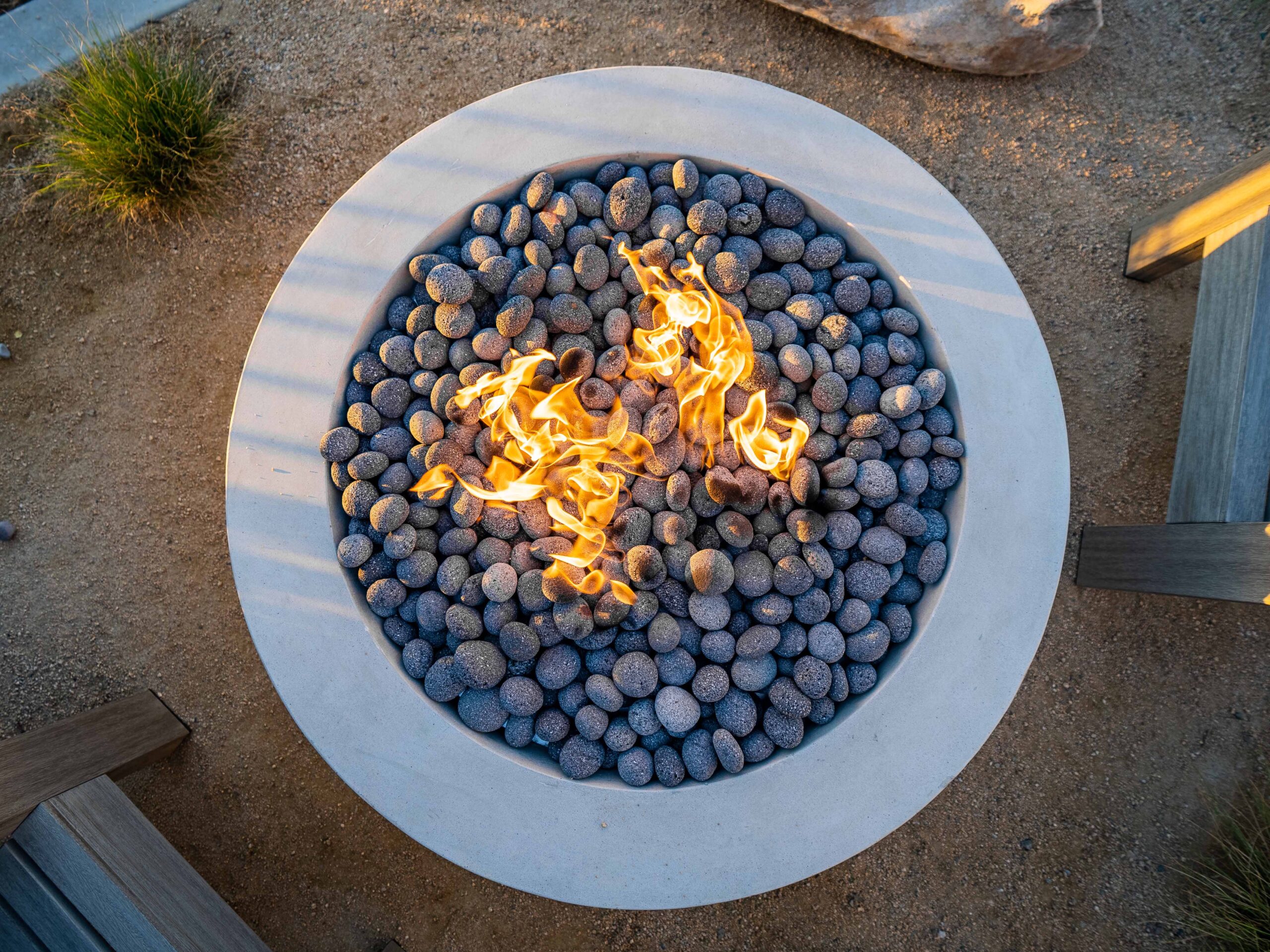 The fire pit comes complete with a 27 lb. bag of ¾” lava rock. The naturally occurring volcanic rock creates a stunning contrast to the beautiful flames of any gas fire feature while the lava rock is heat resistant.